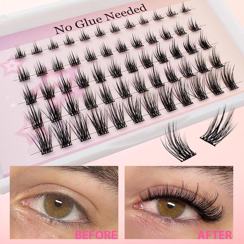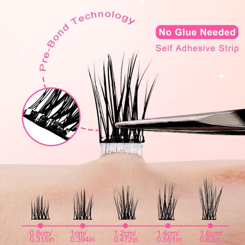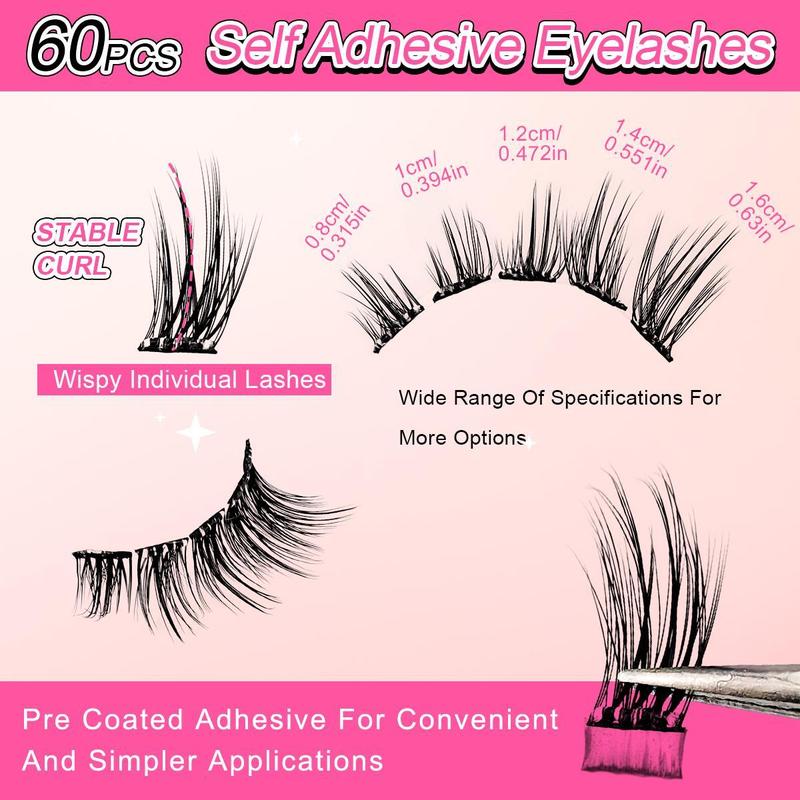 Self Adhesive Eyelashes Kit, 60 Clusters Natural Look Eyelash Extensions with Tools, Eye Makeup Enhancement False Eyelashes for Women & Girls