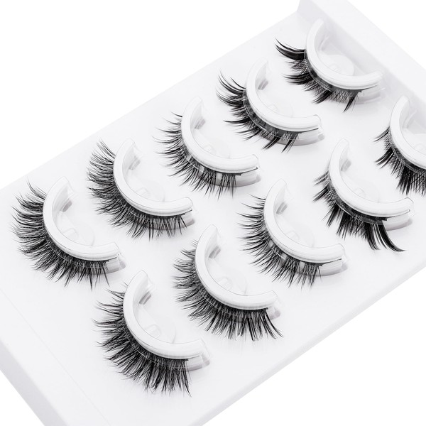 Self Adhesive Eyelashes Natural Look Wispy Self Adhesive Lashes No Glue Needed C-Curved Reusable False Eyelash Cat Eye Pre Glued Lashes Wispy False Eyelashes 5 Pairs (ZDMIX5-3)