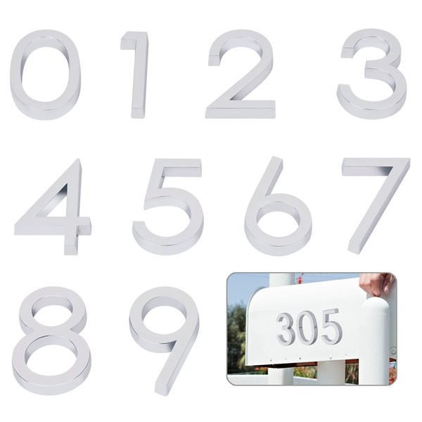 Self Adhesive Mailbox Numbers, Door Address Number Stickers for Office Room, Raised 3D Effect, Chrome Plated (2.36" 10 Pack (0-9), Silver)
