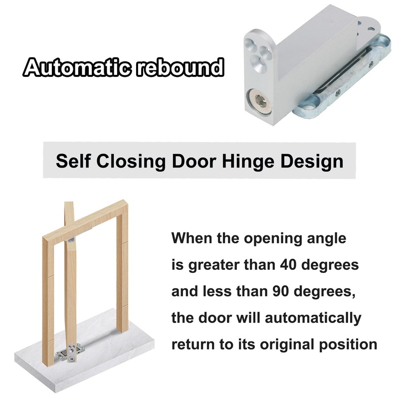 - Design: Self closing door pivot hinges features an automatic closing design, with a built-in roller bearing in the axle for smooth 360-degree rotation, allowing the door to be flexibly opened and closed. When the opening angle is greater than 45 degrees and less than 90 degrees, the door will automatically return to its original position.