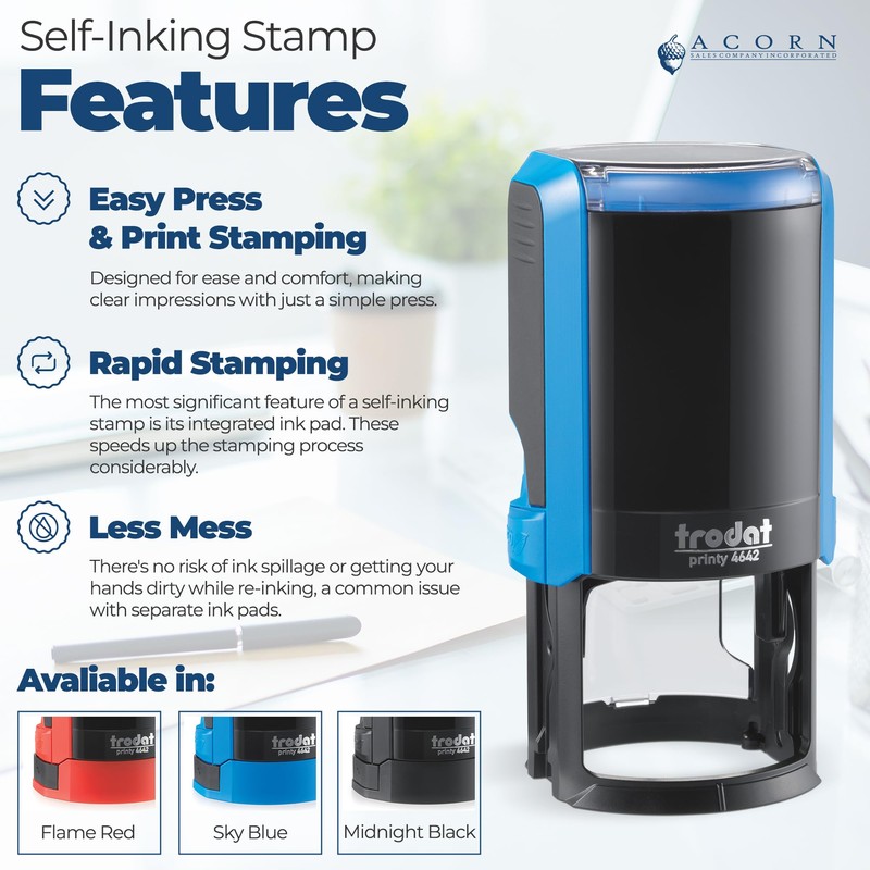 - EASY TO USE: Enjoy the simplicity of self-inking stamps that press and print with ease. With just a press, you can create clear, sharp impressions up to 10,000 times before needing a refill. Say goodbye to messy ink pads.