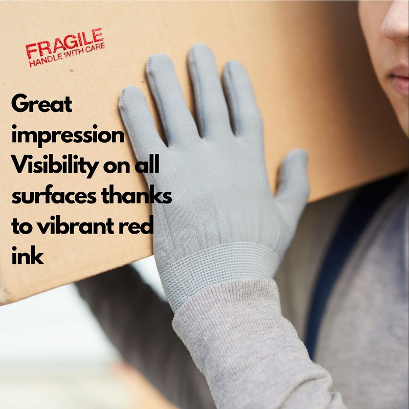 Self Inking Rubber Stamp, Refillable Red Ink Preinstalled - 1.4" x 0.51" X (35 x 8mm) (Fragile Handle with Care)