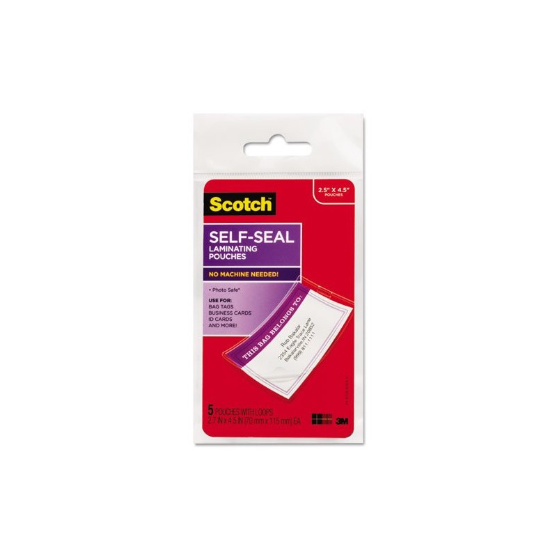 Self-Sealing Laminating Pouches, 12.5 mil, 2 13/16 x 4 1/2, Luggage Tag, 5/Pack