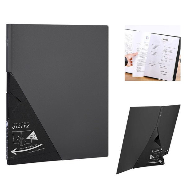 Self-Standing A4 Folder Organiser, 10 Inner Pockets, Standing Folder, A4 Folder with Baffle, Plastic Folder for Notes, Documents, Pictures (Black)