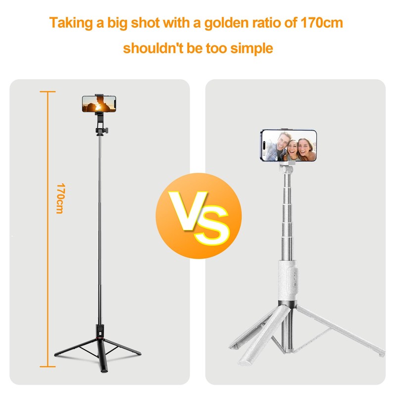 - 【Lightweight and Portable】: The selfie stick phone tripod is designed with portability in mind. With a folded length of only 7.8 inch(20cm) and a weight of 0.37 Ib(169g), But also can extend a long way (to 40 inches including the handle),it's incredibly lightweight and easy to carry around. You can easily pack it in your backpack and take it with you wherever you go, making it the perfect travel companion. Its compact size also makes it ideal for outdoor activities such as hiking, camping, or cycling, as it won't weigh you down.