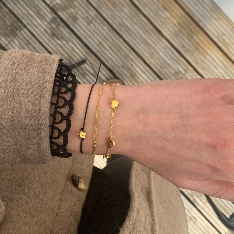 Selfmade Jewellery ® Star Bracelet / Lucky Charm Bracelet With Stars, Ladies, Girls, Women, Handmade, Base Metal, Gold - Black