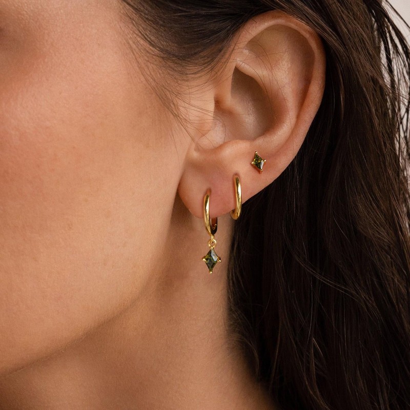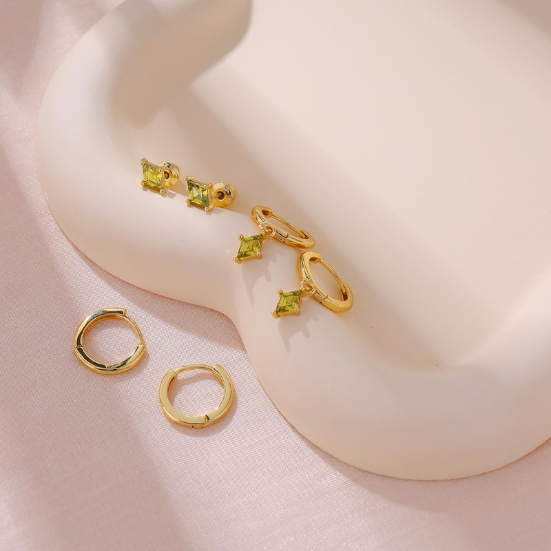 - Dainty Earrings Design:The earring set features a unique green zircon design that combines three different earrings together: stud earrings, gold hoop earrings, and dangle earrings