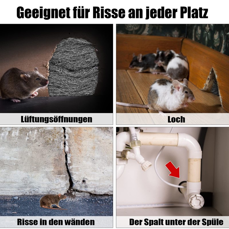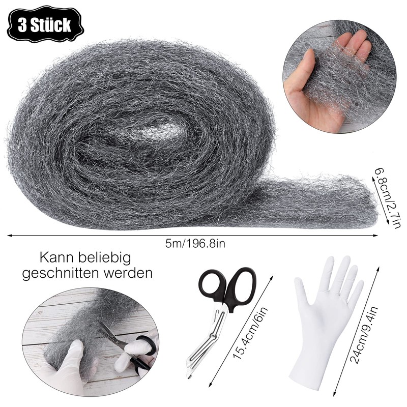 - 【Easy to Use】- Just use scissors to cut the size you need and fill the space where you want to block, as the steel fibres is very sharp, please make sure to wear work gloves during operation. Please keep them away from kids invoid hurting accidently.