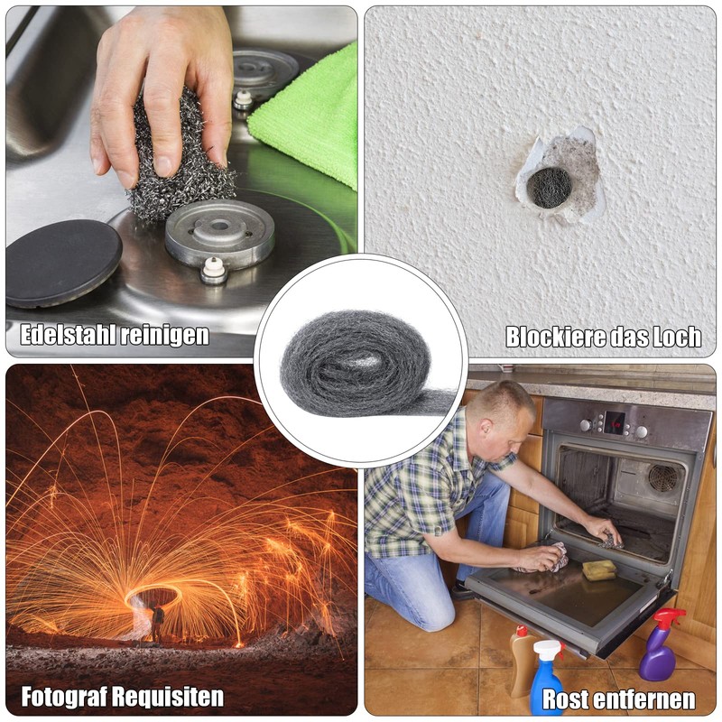 - 【Wide Application】- Fine wire wool works perfectly to against mice or small animals entering through narrow spaces, and it can be used for both indoors and outdoors, suitable for house, garden, garage, office, kitchen, attic, radiator pipes, wall gaps, weep holes, etc.