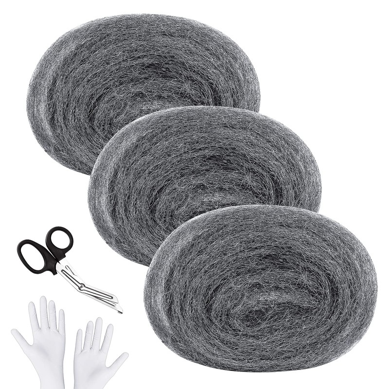 SelfTek 3 Pack Steel Wool Mice, 15 Meter Ultra Fine Steel Wool with Work Gloves and Scissors, Coarse Wire Wool for Rodent Control