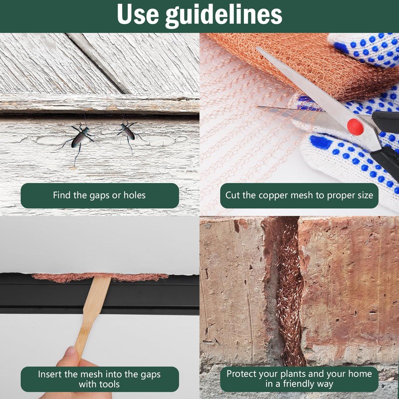 - For Rodent Control: Perfect for blocking holes, sealing cracks around pipes, and preventing mouse, rats, or pests from entering your home, this copper mesh is easy to apply. It's ideal for use in gardens, kitchens, and various home improvement tasks.
