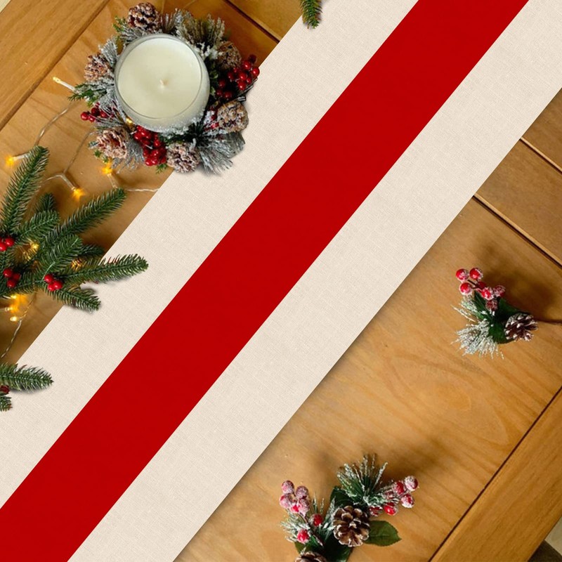 Seliem New Year 2025 Red Stripe Table Runner, Merry Christmas Tabletop Scarf Home Kitchen Winter Holiday Striped Decor, Seasonal Xmas Farmhouse Rustic Burlap Dining Decorations Party Supply 13 X 36