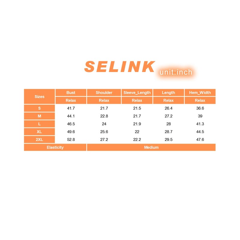 XXL:Bust:52.8, Sleeve Length:22.2, Length:29.5