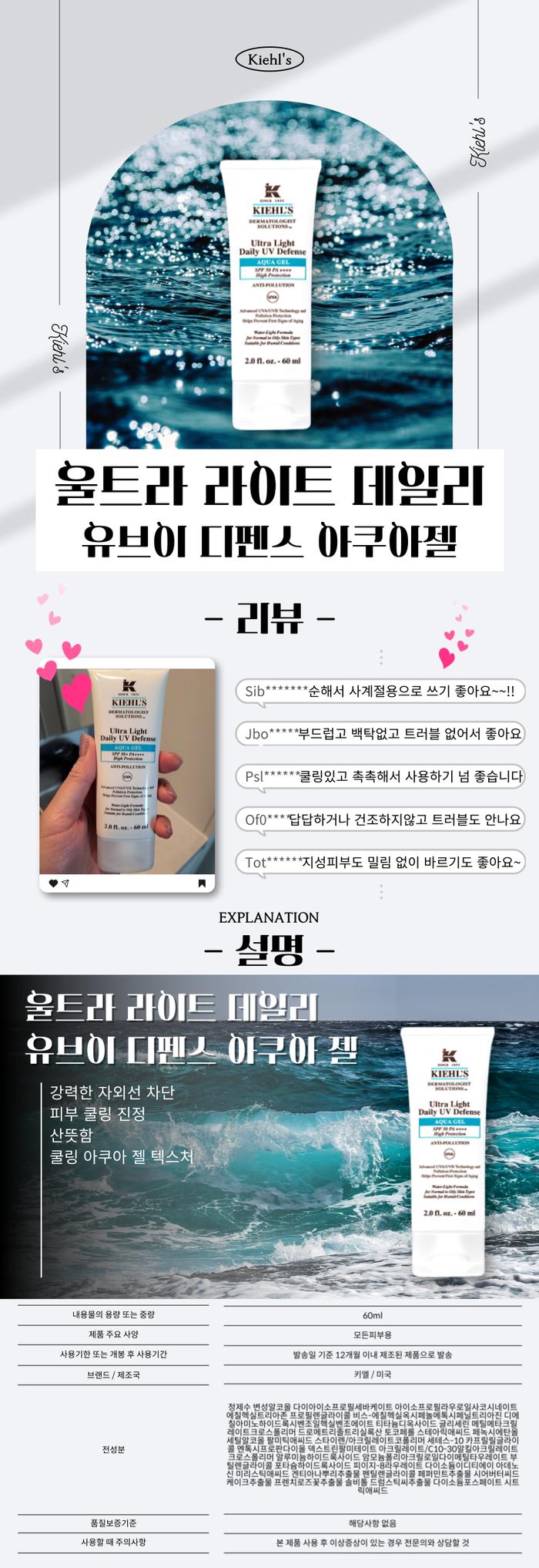 (SellerHub) Ultra Light Daily UV Defense Aqua Gel 60ml (S16293682) / () 울트라 라이트 데일리 유브이 디펜스 아쿠아 젤 60ml (S16293682)