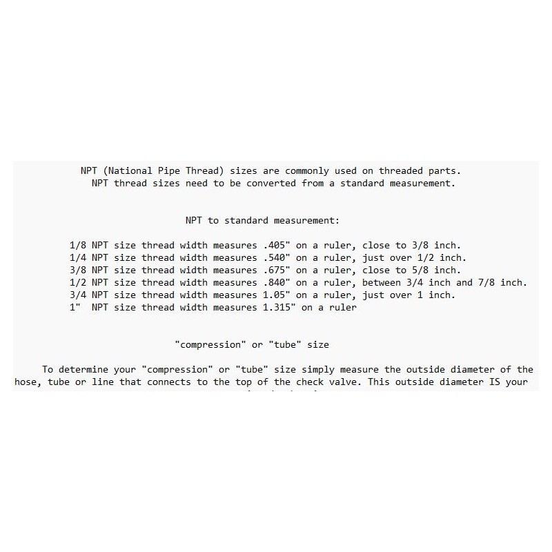 - Thread diameters are not standard U.S. / Imperial sizes. These thread diameters are NPT sizes. Please see our listing's explanation of NPT (National Pipe Thread) sizes if you are unfamiliar with NPT sizes. For instance, this valve is 1/8 NPT, so the thread diameter actually measures close to 3/8" on a ruler.