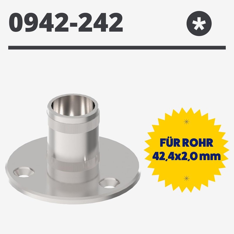 Sellon24® Stainless Steel Floor Flange Ground Anchor Round Pipe Flange Floor Holder Wall Bracket Anchor Plate Diameter 42.4 mm Railing Post Plug Fitting Ground Sleeve