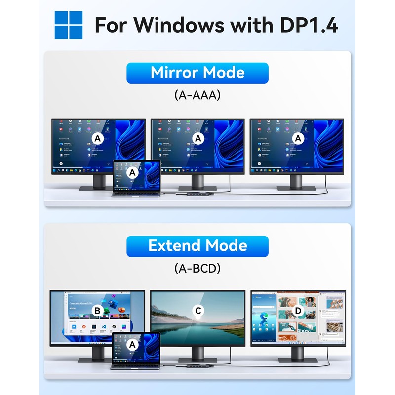 - Wide compatibility: This USB C hub is not compatible with all USB C devices. Before purchasing, check whether your laptop host device supports video output or DP Alt mode. If so, you will see the DP logo next to the port. Our USB C docking station is compatible with MacBook Pro 2022/2021/2020/2019, MacBook Air 2022/2021/2020/2019, Lenovo Yoga 13sITL 2021/ThinkPad T14 Gen1, Dell XPS13/15 and so on. Packing list: 1 x USB C docking station (without cable), 1 x product manual (English language not guaranteed).