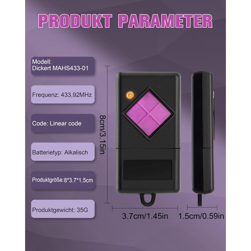 - Replacement for Dickert MAHS433-01---This radio transmitter is only compatible with Dickert remote controls with a radio frequency of 433.92MHz, linear code, AM modulation. This item is only for dip switch code, if your old remote control is not the same, please do not buy