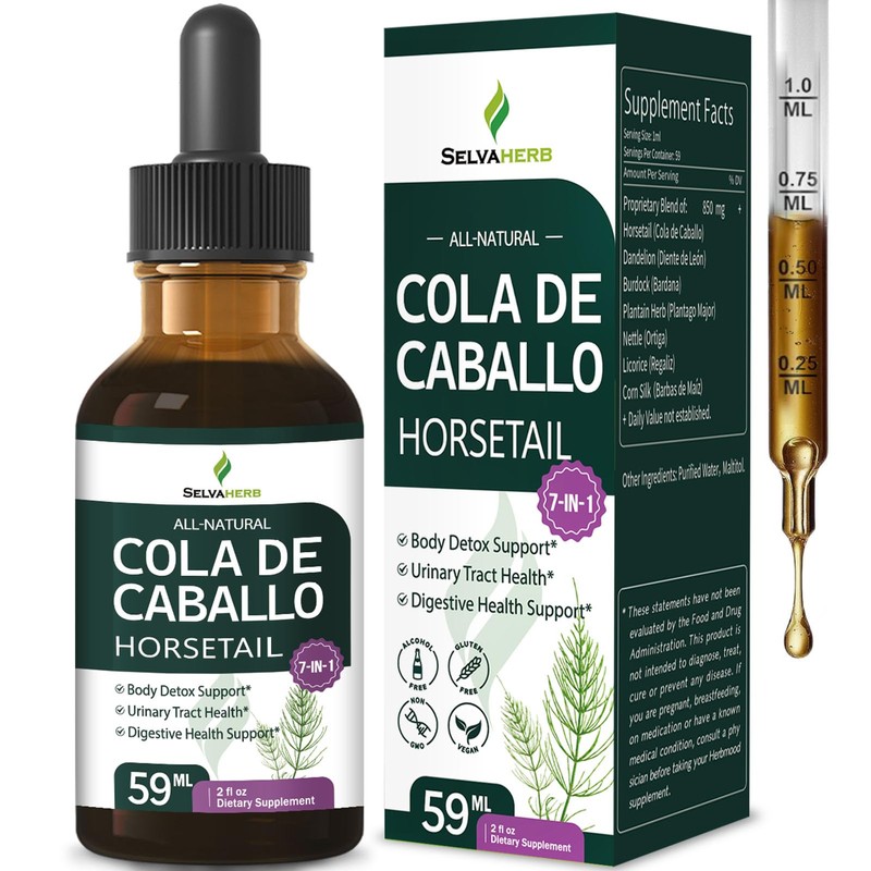Selvaherb Horsetail Herb (Cola de Caballo Hierba) Drops for Body Detox Support, 7-in-1 Herbal Supplement for Urinary Tract & Digestive Health with Dandelion Burdock Extract. 2oz