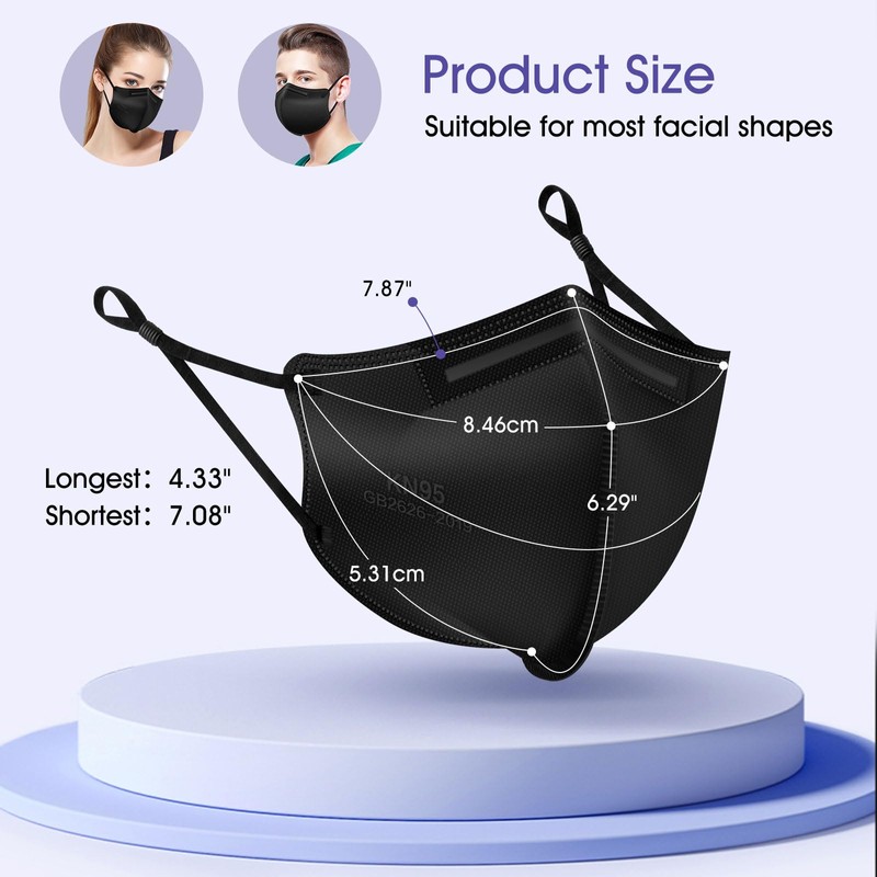 - High-quality Material: Our KN95 masks are made with a combination of non-woven fabric and hot air cotton, ensuring durability and comfort. The 3D design provides a better fit and snugly contours to the face for enhanced protection.