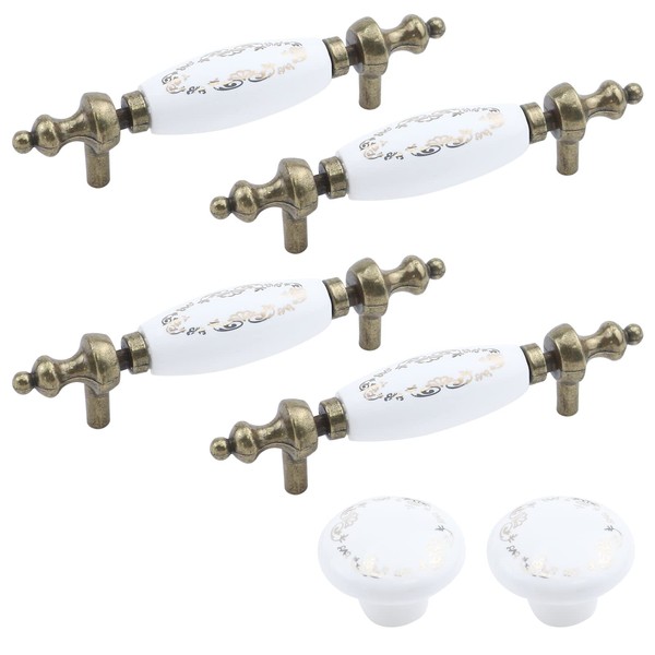 Semetall 6pcs Antique Bronze Ceramic Dresser Handles,Vintage Drawer Pull and Knobs for Cabinets and Drawers Doors Pull Handle Hardware, White