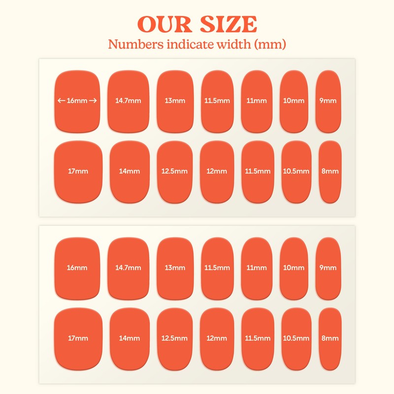Fits all nail size and shapes - Use your palm to warm them up. Once the strips are warmed, they can be easily pulled for the perfect fit on your nails. Attach the nail strip along one side of the nail, and then stretch it to fit the other side of the nail.