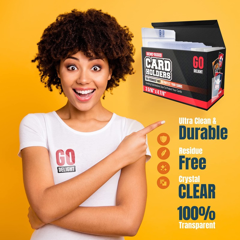 - ✔ HIGH PROTECTION: Every collector knows the heartbreak of damaged cards. Our trading card sleeves are here to prevent just that. With Go Delight's perfect fit card sleeves, safeguard your most prized cards from bending, fading, and those dreaded corner damages.