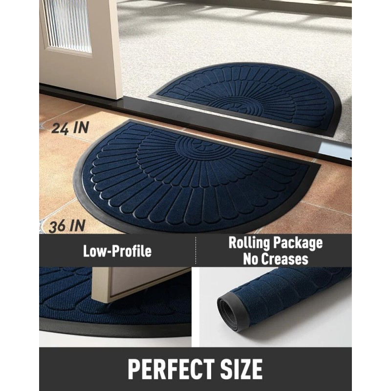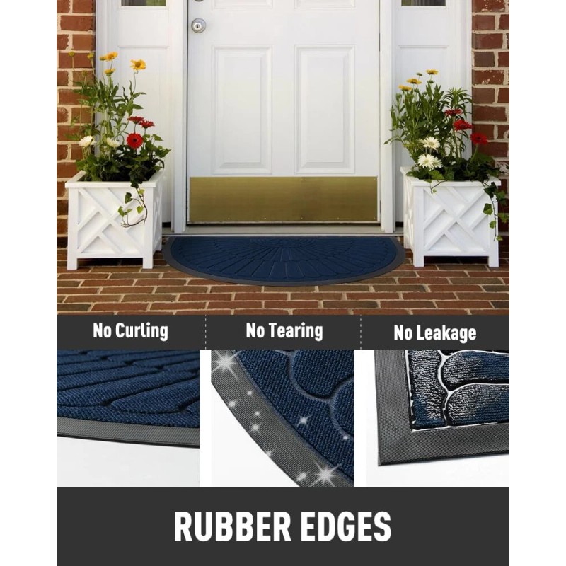 Semicircular Durable Rubber Doormat- Non Slip Front Door Mat for Outside Inside Entry, Navy Blue 24”x36”