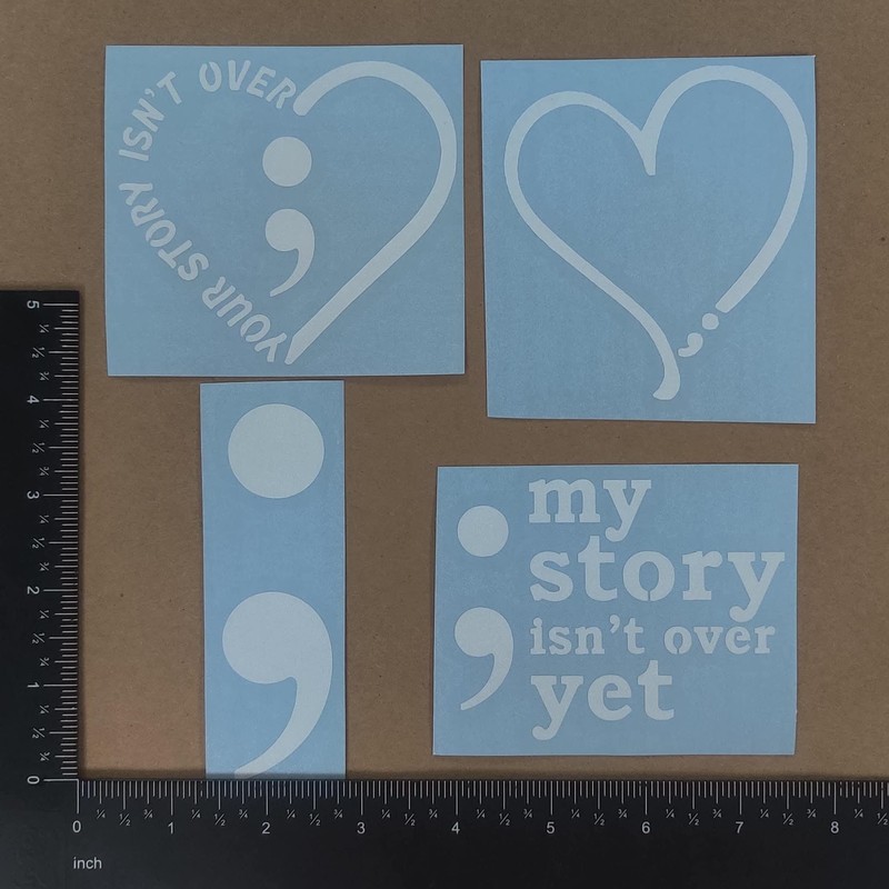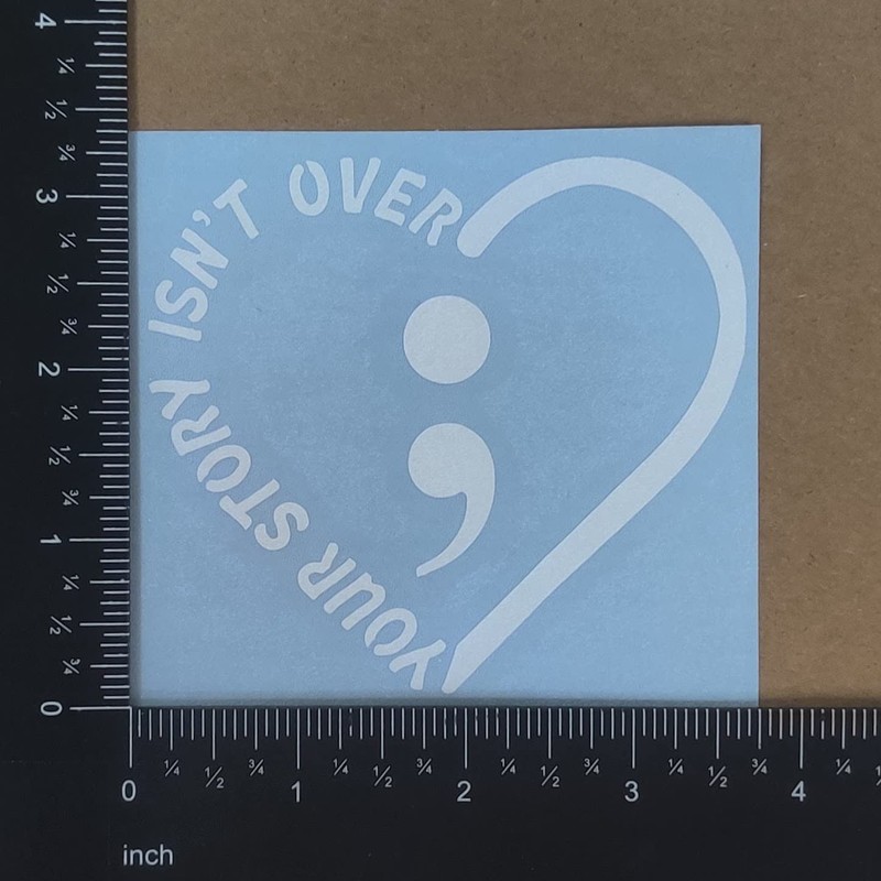 Semicolon Decal 4 Pack: Your Story Isn't Over Heart, Heart Semicolon, Semi Colon, My Story Isn't Over Yet Decals (Small ~3.5", White)
