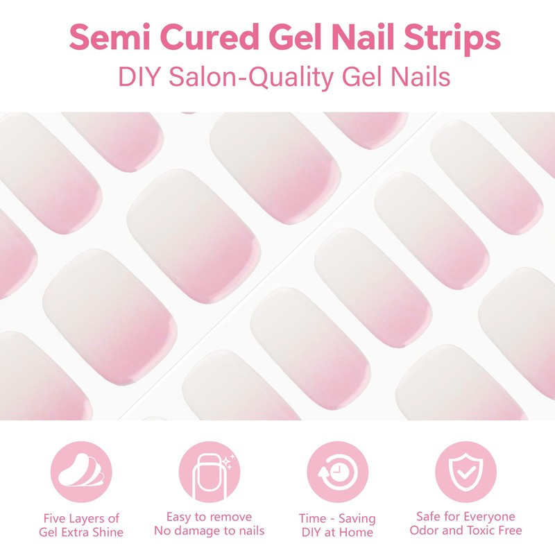 SEMINCA Semi Cured Gel Nail Strips-Valentine's Pink Semi-Cured Gel Nail Stickers,Easy DIY Press On Nails,Salon Gloss at Home(White and Pink Gradient Color)