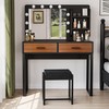 - 💍【Sturdy and Durable Material】The makeup vanity with lights is crafted from strong metal frame and high-graded wood. The metal tube has strong rust resistance. The tabletop is made of medium density fiberboard. Makeup table overall size:39.37"L*15.74"W*52.75"H. Stool size: 17.12"L*12.2"W*19.09"H.