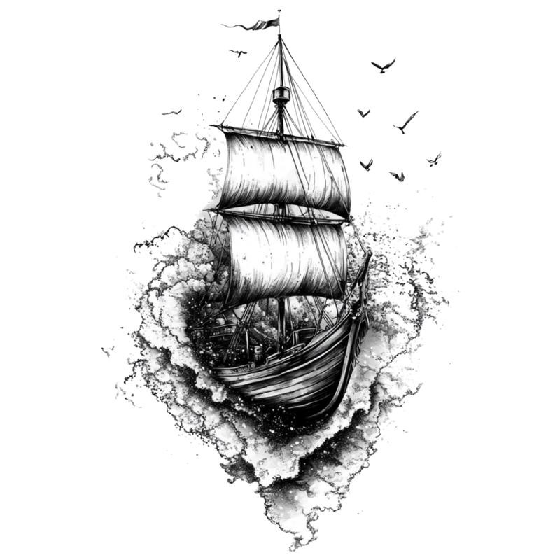 SemiTats Sailing Through the Storm 15 Days Semi Permanent Tattoos - Sizes: 4x4 inch (10x10 cm)