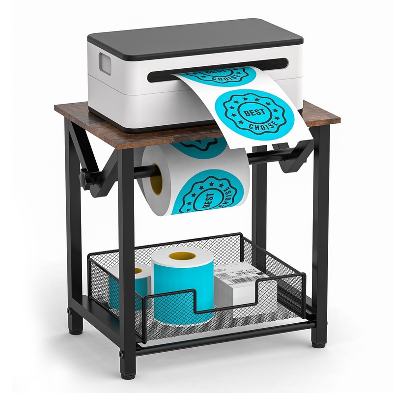 - Durable and Sturdy Materials:Specially customized for label dispenser, using high-quality solid wood panels and high-strength carbon steel frames,this thermal printer stand can support up to 18lb. The sturdy design and the anti-slip bottom pad ensure the holder stays firmly in place, providing long-lasting durability and stability.