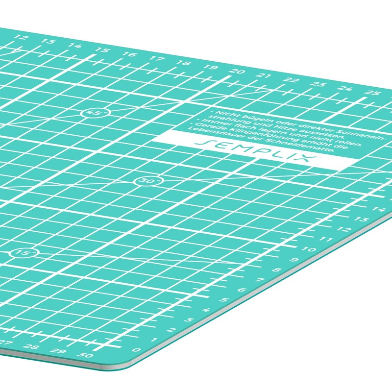 Our Semplix cutting mat is ideal for precise cutting of fabrics and paper with a rotary cutter. It is soft enough to protect the blade but firm to prevent deep cuts. The surfaces are self-healing. This means that the cutting line closes again and becomes almost invisible.