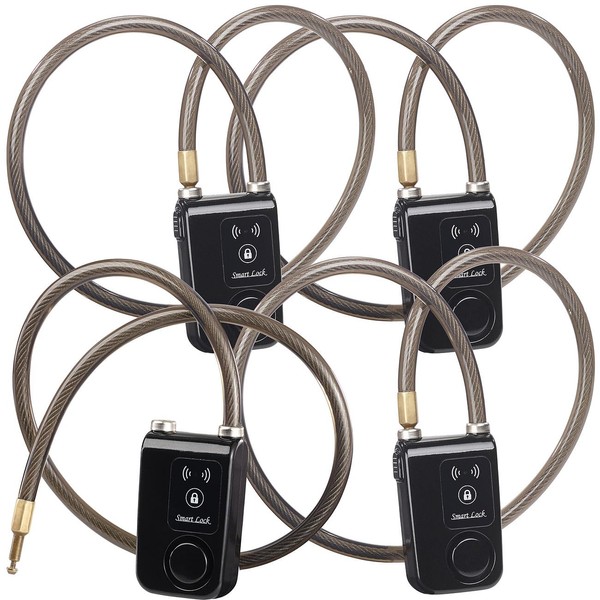 - 4 cable locks with alarm function and app control. Bluetooth 4.0 for connection to your iPhone 4S, 5, 5C, 5S, 6, 6S, SE, 7, 8, 8 Plus, X, Samsung Galaxy S6, S7, S8, HTC U11, HTC U Ultra, Sony XZ1, XA1 Plus and much more. Loud alarm with approx. 110 dB in case of theft attempts: e.g. when cutting the cable, when manipulating the battery compartment, in case of shocks Safety housing screws 4 cable locks including German instructions (English language not guaranteed)