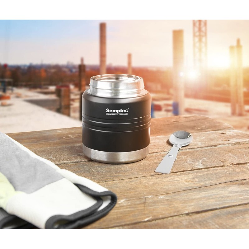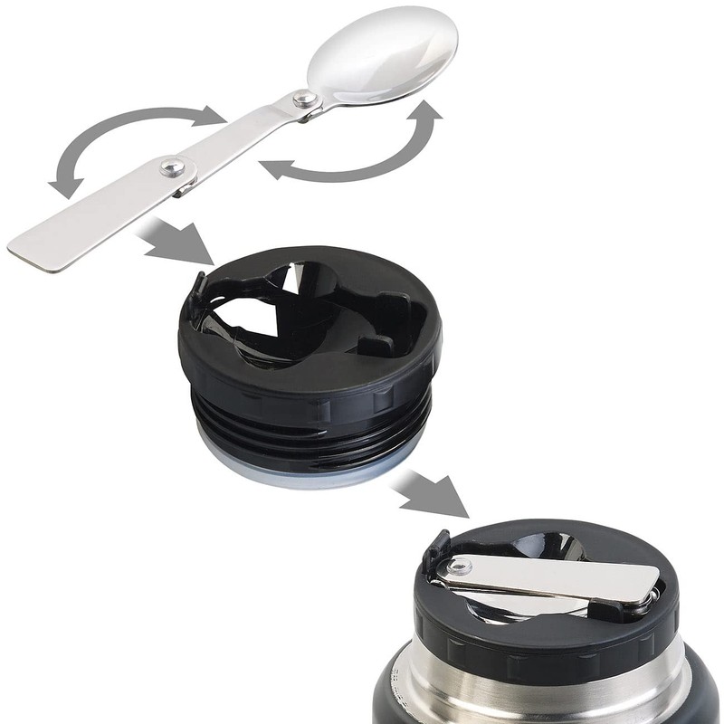 - Ideal for hot as well as cold drinks and liquid food. Keeps warm for up to 8 hours or cool for 14 hours. Leak-proof thanks to double closure. Vacuum double wall made of stainless steel. Practical folding spoon for hot soup and more