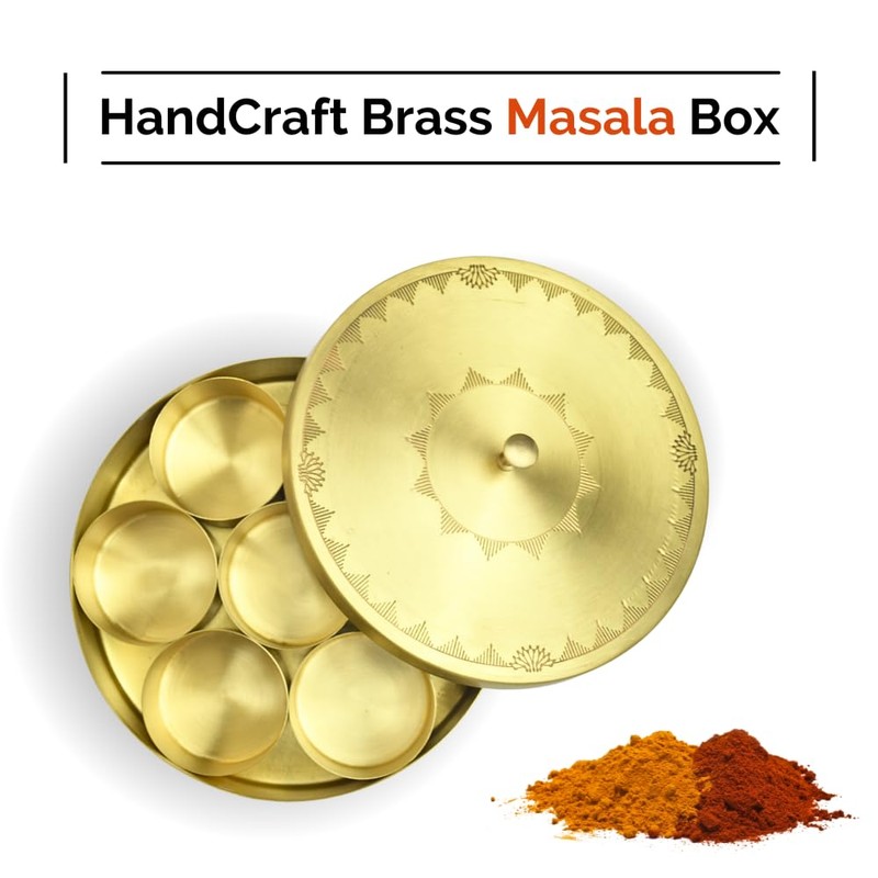 - Premium Quality Brass Masala Box: Our spice container consists of pure brass, which has unique corrosion resistance properties. It is indigenously made using traditional methods which could help in giving immunity benefits to your food
