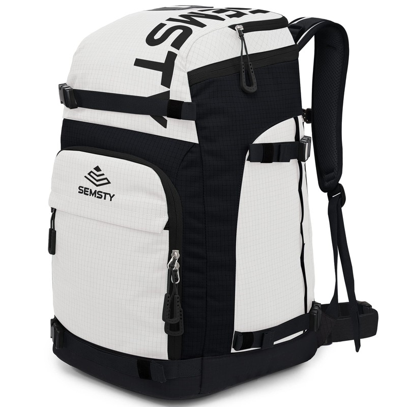 SEMSTY Ski Boot Bag, 55L Waterproof Ski and Snowboard Boots Travel Backpack for Skis, Snowboard, Ski Helmet, Goggles, Gloves & Accessories