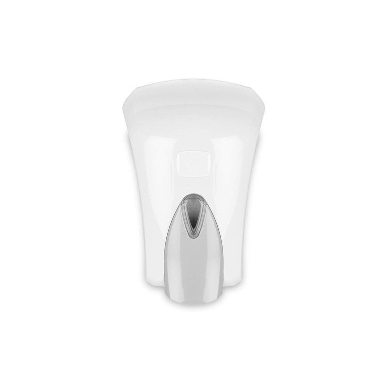 - The white housing is made of a sturdy plastic, the large push button is contrasting grey. The soap dispenser holds 1,000 ml of soap and is 230 x 160 x 120 mm in size