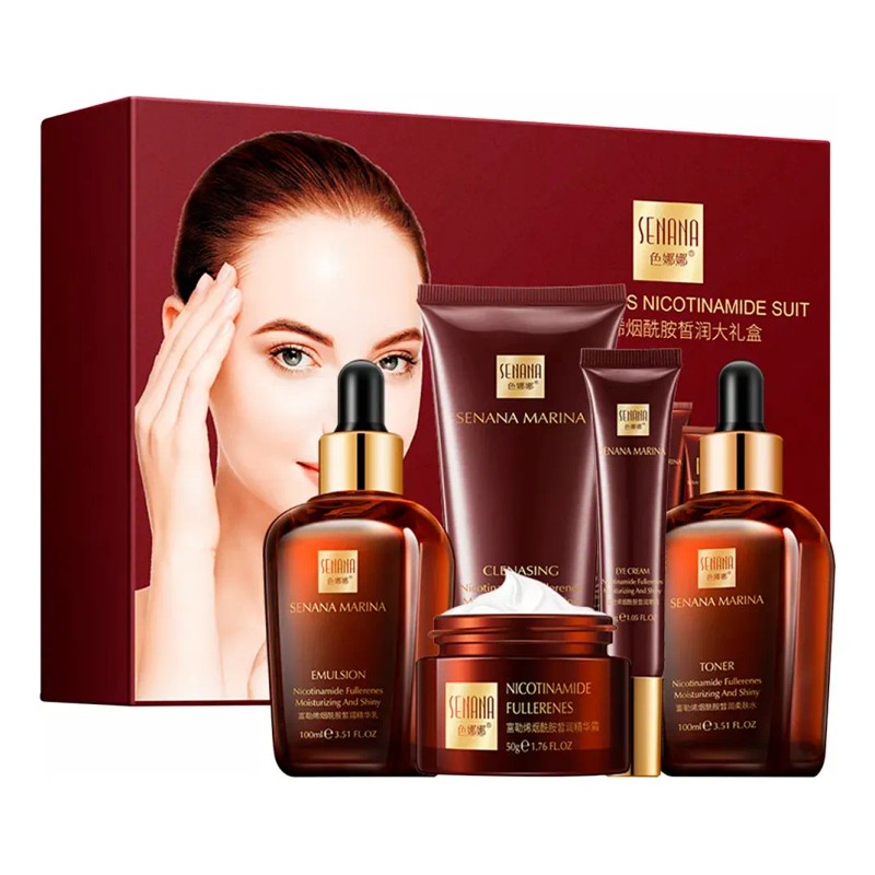 - ¿Buscas una piel más luminosa, uniforme e hidratada? El Set de Cuidado Facial Senana está formulado con niacinamida, conocida por su capacidad para reducir manchas, controlar la grasa y mejorar la elasticidad de la piel. Su combinación de productos te ayudará a lograr un cutis saludable y radiante en pocos pasos.