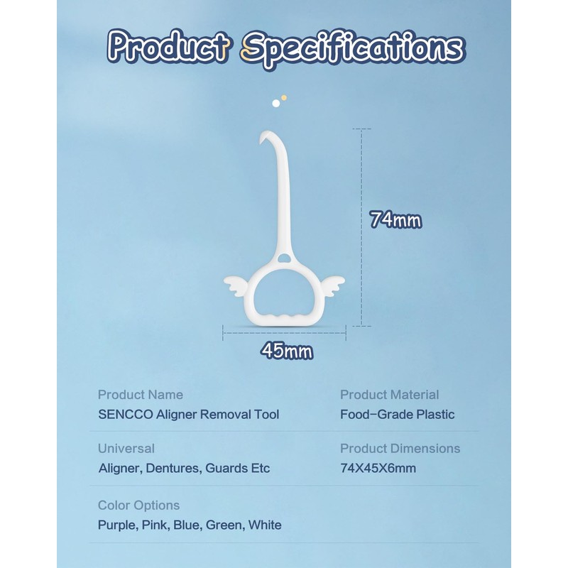 - PROFESSIONALLY DESIGNED: The SENCCO retainer removal tool efficiently removes tight, stuck, or difficult to remove clear aligners, ensuring hygiene and oral health