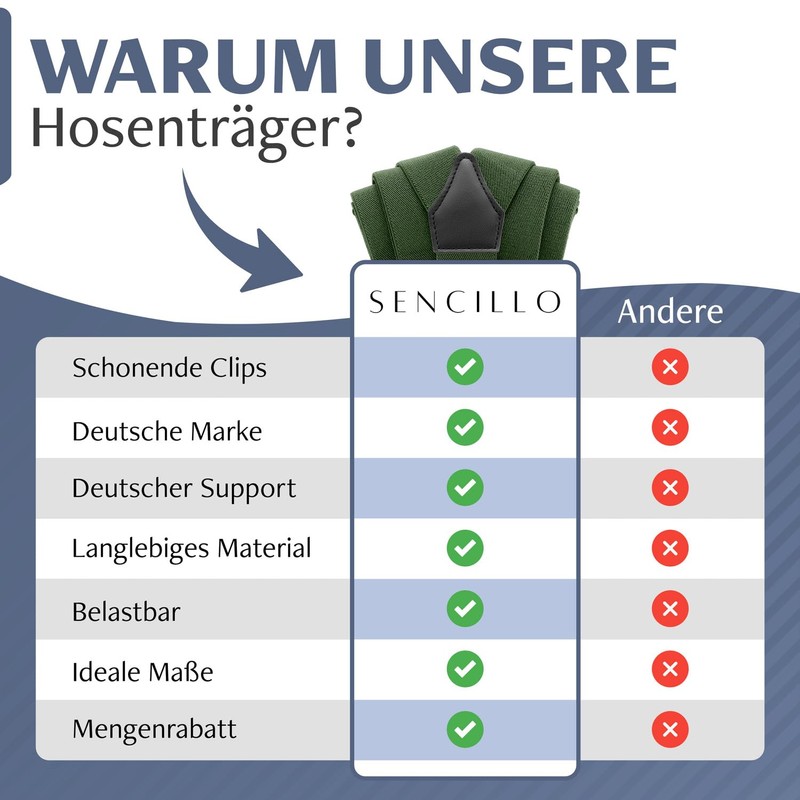 - Versatile: whether you want to add a touch of class to your clothes, or just want to hold your trousers up, the Sencillo men's braces are suitable for any occasion