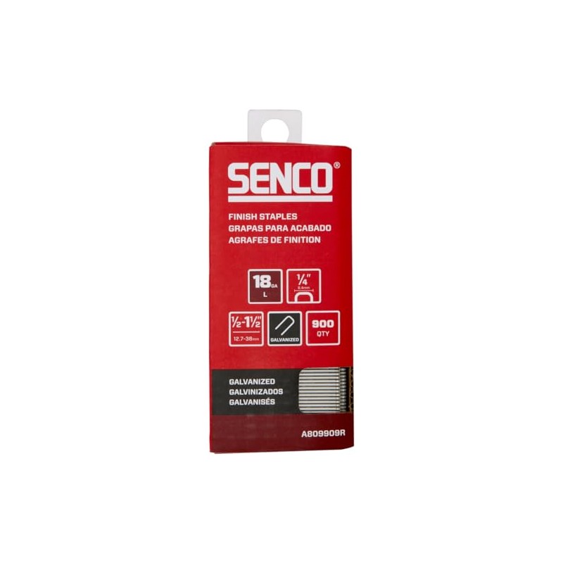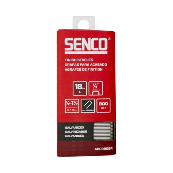 SENCO A809909R 1/2" - 1-1/2" 18 Gauge 1/4" Crown Finish Staples, Galvanized Finish 1,000 Count Pack