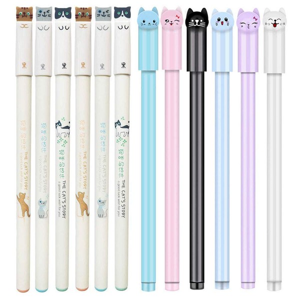 - ステンレス0.5 mmと6パック0.38 mmブラックインクペン、合計12本パック。 詰め替え可能なかわいい猫のゲルペン 完璧なインクフローと長期間の使用で、にじみや汚れの心配がありません。