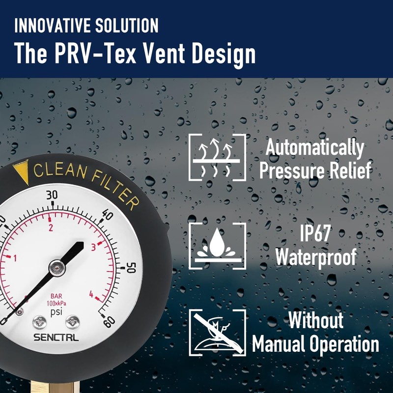 - PRV-Tex Series: The circular dial is encased in a 304 stainless steel casing, providing robustness and corrosion resistance. IP67 waterproofing reduces the occurrence of window fogging caused by internal condensation, thus providing clear readings and weather resistance.
