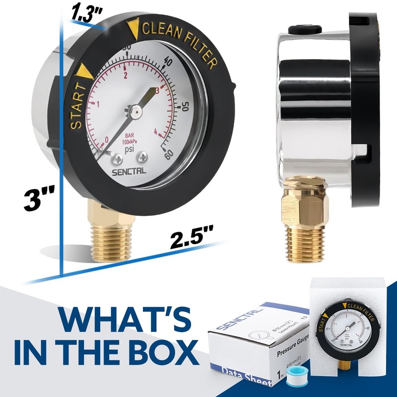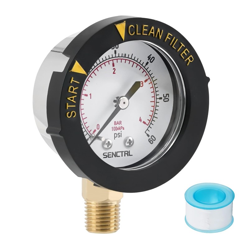 SENCTRL 0-60 Psi Pool Filter Pressure Gauge, 2 inches Dial, 1/4 NPT Lower Mount, Stainless Steel Case, Waterproof, Clean Filter Indicator, for Swimming Water Pump Spa Aquarium Pressure Test