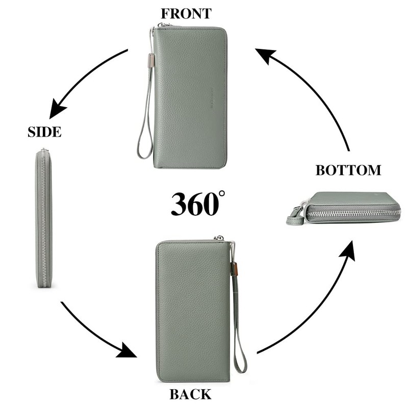 - High-Quality 👍 -- The women's wallets are made of genuine leather, durable and glossy. Sturdy bronze-colored heavy-duty zipper runs smoothly and keeps the structure securely. Neatly hand-made stitching along the edges makes the cover firm as long as it can function.
