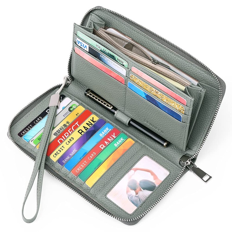- Practical Structure😍 -- Our rfid blocking wallet is zip around closure structure. 17 cards slots, 1 ID window slot, 3 bill pockets, 1 inner zipper pocket, 1 pen slot, and 1 removable wristlet. It is always a friendly life helper roomy enough to hold up credit cards, cash, coins, Phone, photo, pen, etc.
