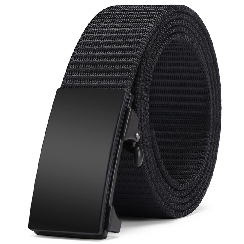 SENDEFN Men's Adjustable Fabric Belt Canvas Belt Width Approx. 3.5 cm with Metal Buckle Automatic Buckle, black