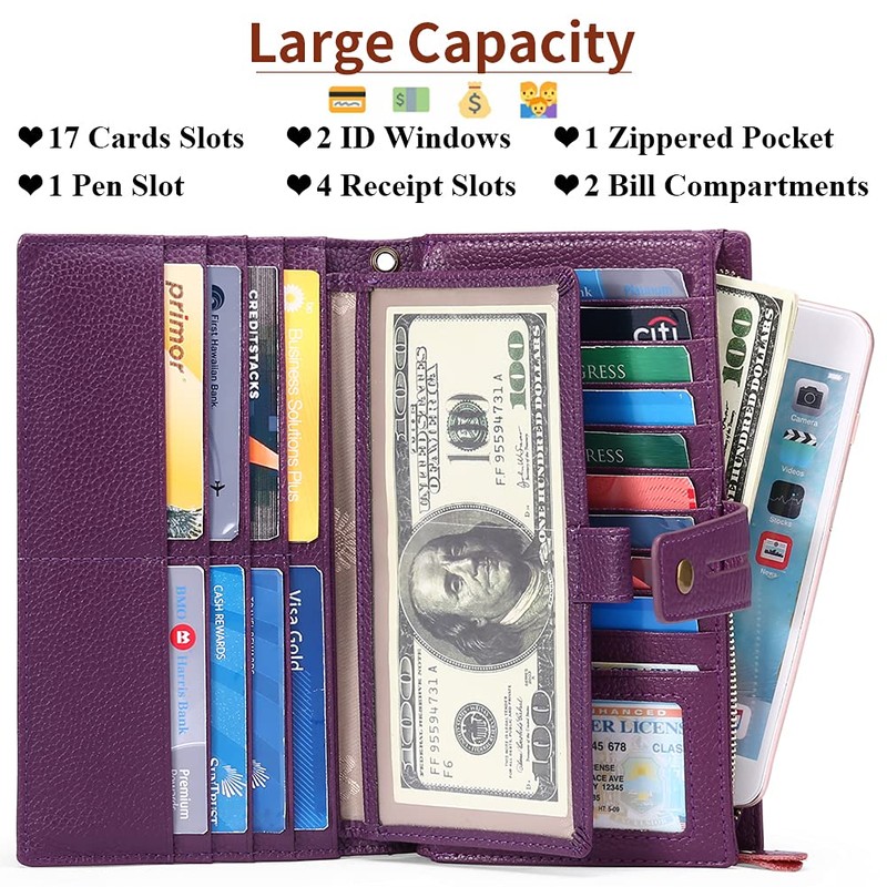 - High Quality - This women's wallet is made of premium pebbled top-grain genuine leather, looks luxurious, and touches supple, durable structure ensures to service a long time for you